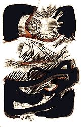torcido hacia la muerte del delgado día,